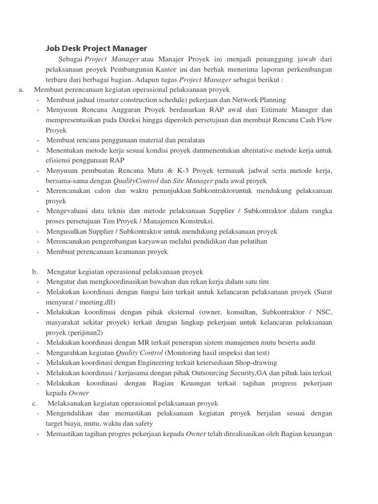Job Desk Project Manager : Project Manager Job Description Pdf Project Management Business / Work closely with other client's managers to meet project expectations and timeline.….